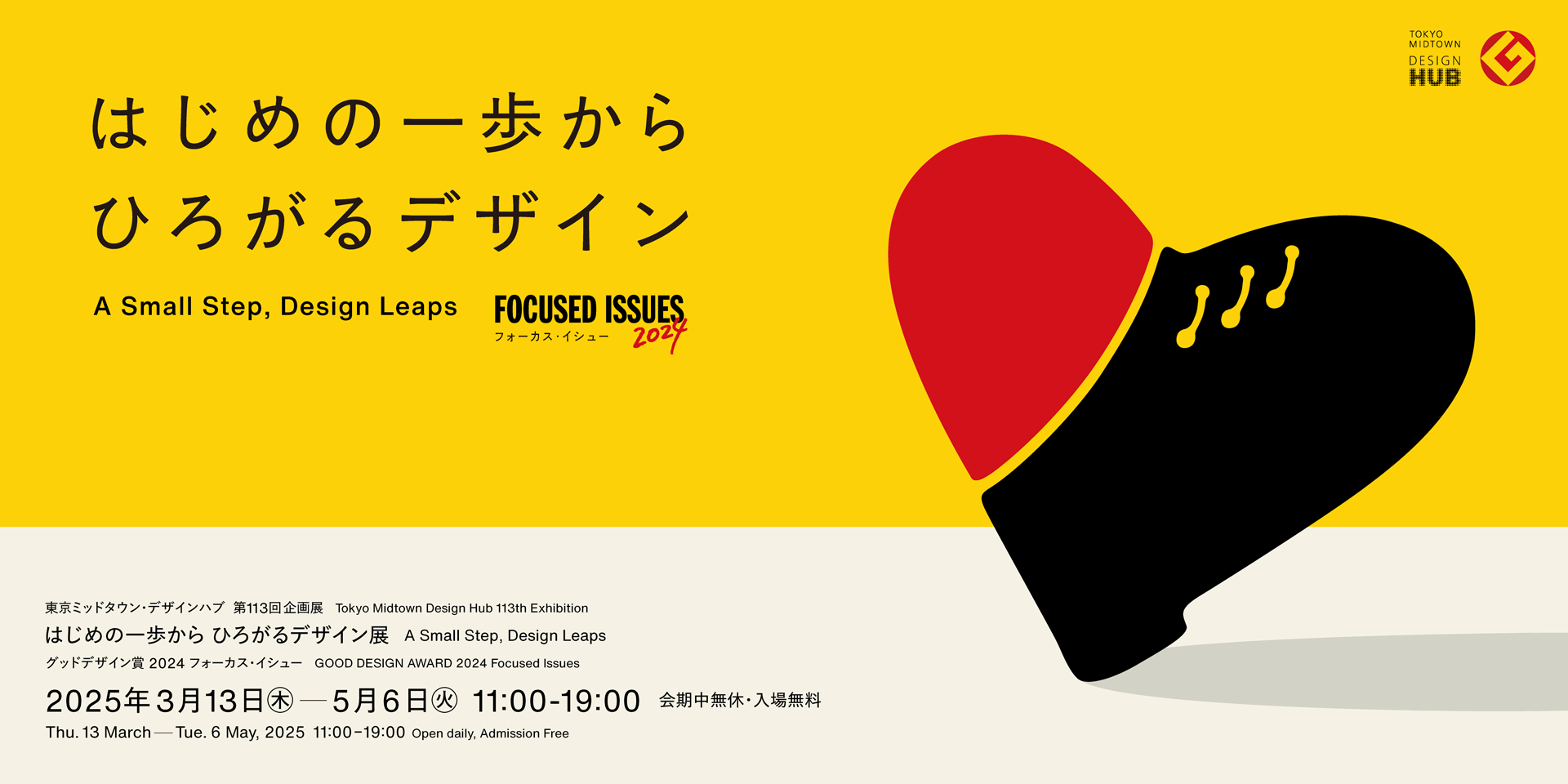 本展では、2024年度フォーカス・イシューテーマ「はじめの一歩から ひろがるデザイン」に焦点を当て、6つの提言とそれぞれの事例としてあげられた最新のグッドデザイン賞受賞デザインを中心に展示します。テーマに込められた意図をひもとくとともに、提言の背景にある多様な視点を深掘りします。グッドデザインを生み出した関係者の想いと、新しい挑戦のストーリーに触れることで、これからの「はじめの一歩」を踏み出すきっかけとなることを願っています。