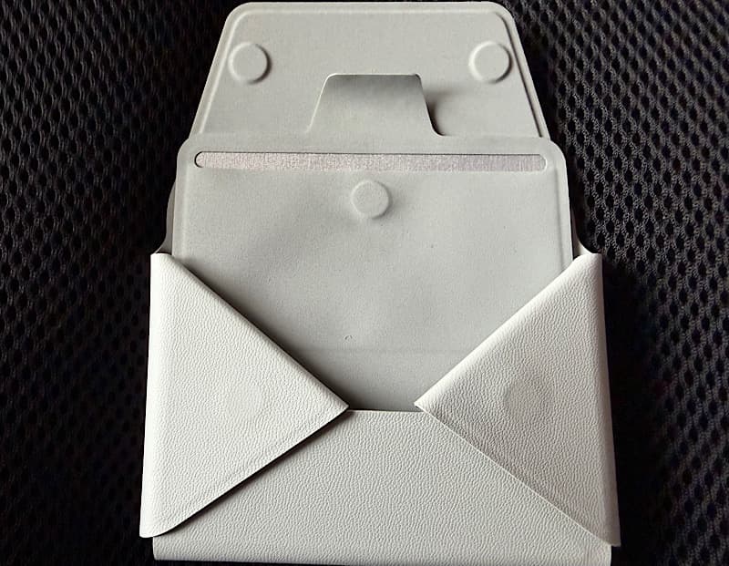 左右のマグネットを開けるとこのように中のカード取り出し部分が丸見えになります。この部分も開けやすくなってますが、止めるときにはマグネットなので使っているときに勝手に開くことはなさそうですし、使っていて一度も開くことはありませんでした。