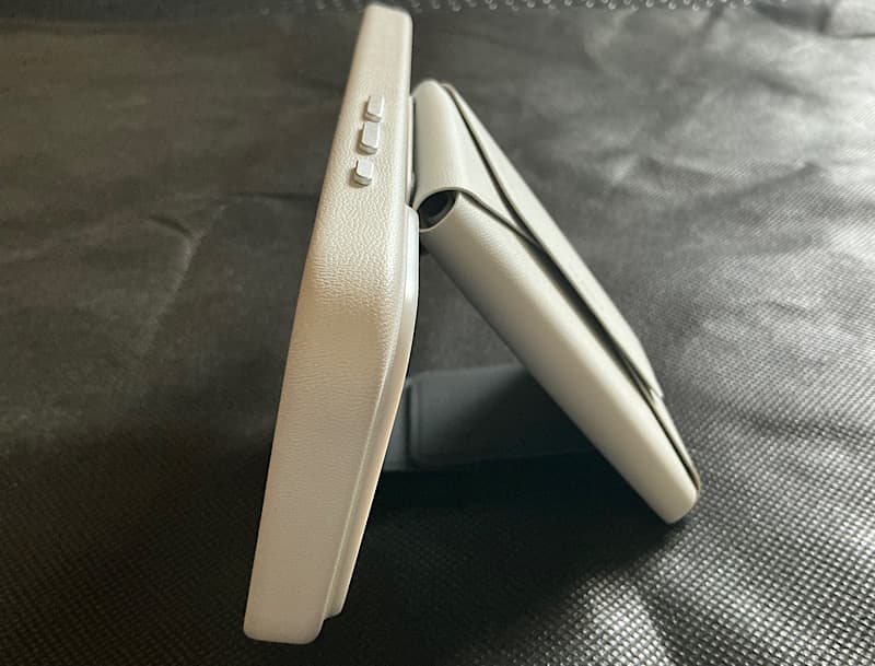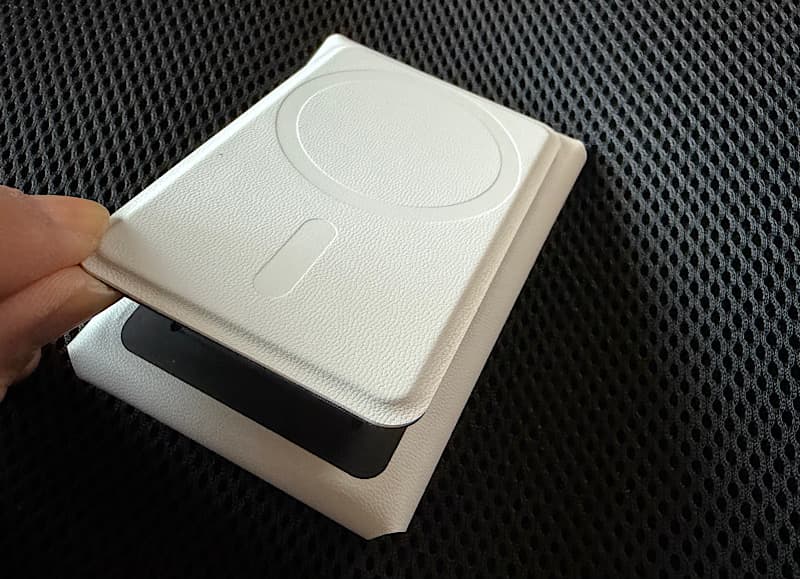 広げたままの状態で裏返すと、iPhone背面にくっつくMagSafe部分が見えます。
