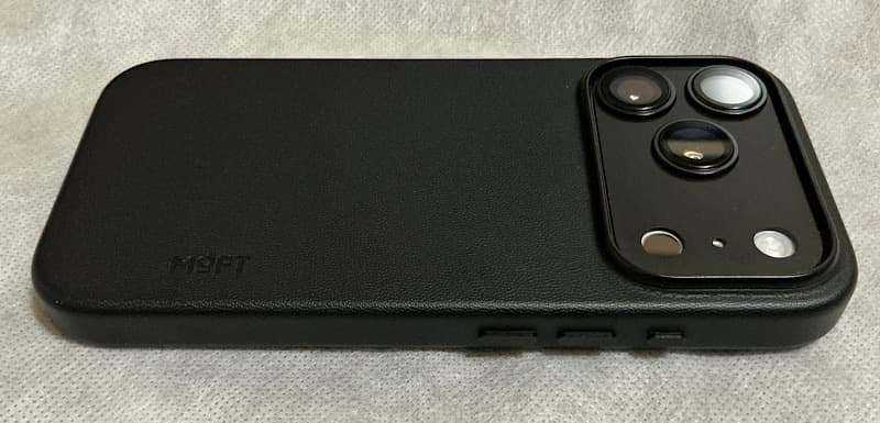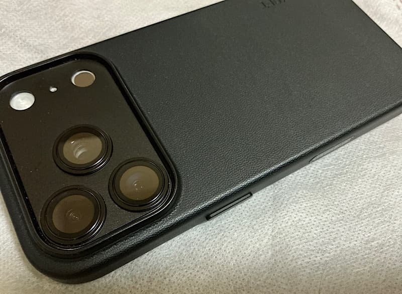 先月末、MOFTのMOVAS™レザーケースを2種類紹介させていただきましたが、Amazonのブラックフライデーセールでレンズカバーもブラックを購入したものが届いたので、iPhone 17 Proを一面ブラックにしてみました。ブラックフライデーにかけたわけではなく(と言っても、周りからはブラックフライデーモードと言われました)、全身黒どうか見たかったというのがありますが、今も気に入って、黒一色にしてます。