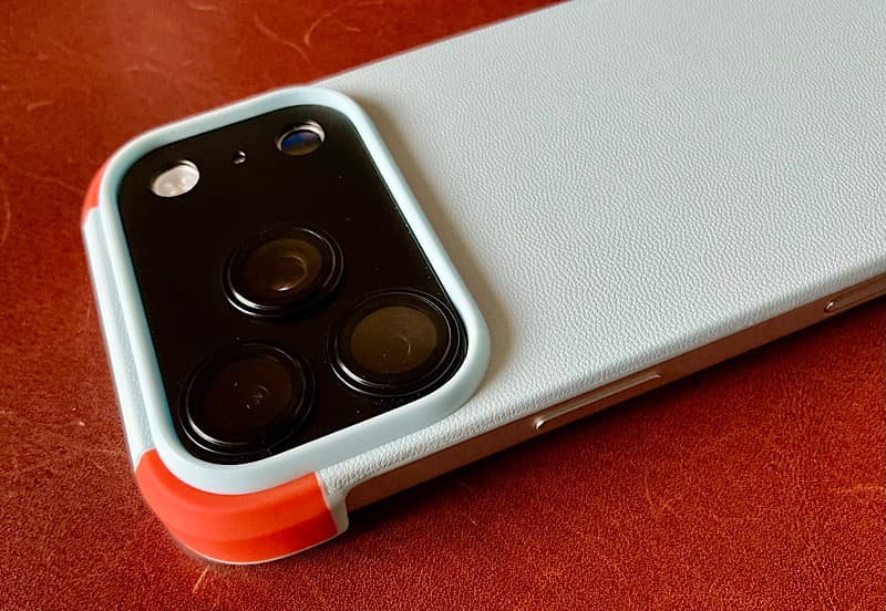 個人的に、このバイカラーケースを着けるときには、レンズカバーはオレンジにしようと思いました。ただ、レンズカバーを何度も貼り付けては取ってを繰り返しているので、レンズカバーがポロリと落ちるのが心配になってきてますが、今のところ、レンズ部分がしっかり固定されているのか取れたことは一度もありません。