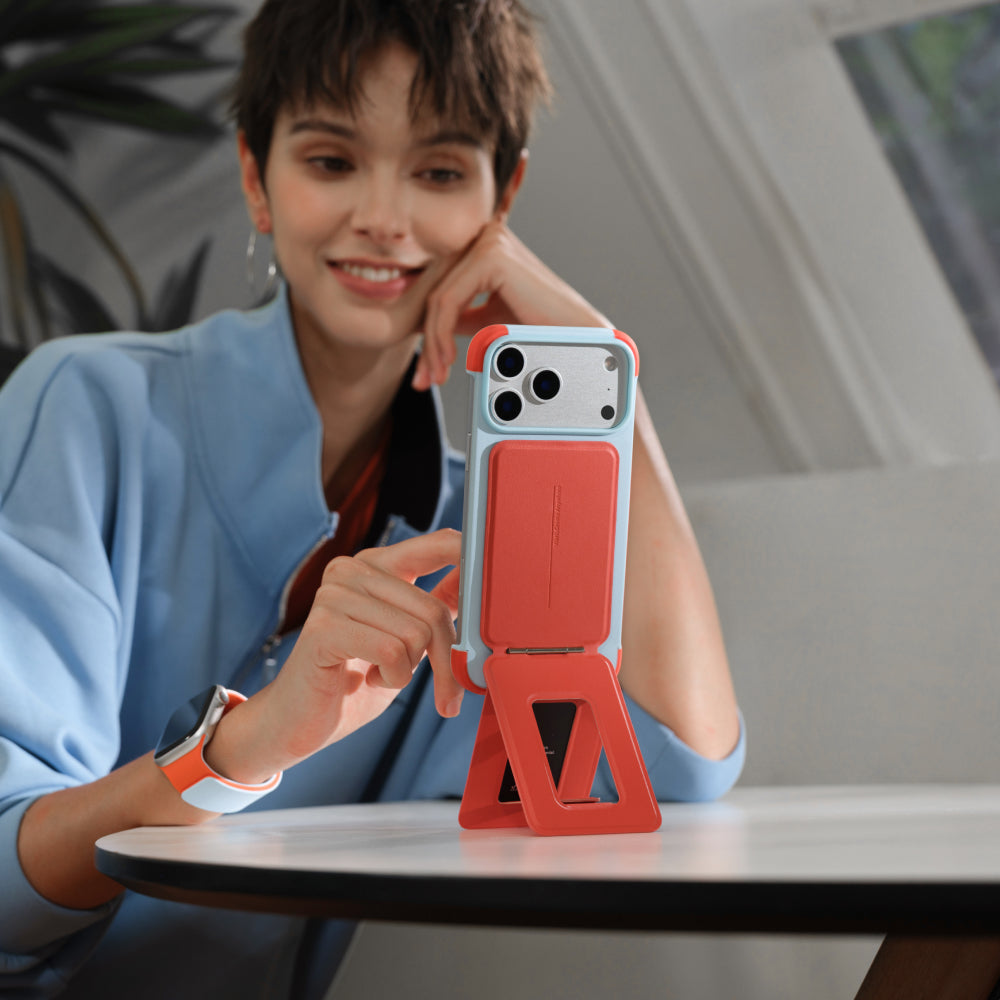 軽さと保護性能を両立、装着感をほとんど感じさせない設計でありながら、日常使いに耐える耐久性を備えています。スリムな形状、補強されたコーナー(四隅)、そして大胆なバイカラーデザインが、ミニマルなフォルムと適度な耐衝撃性を実現しています。
