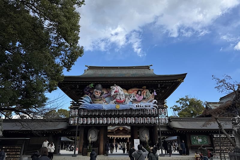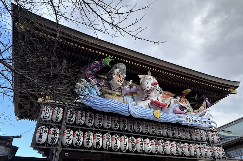 寒川神社の有名なものの1つ。「迎春ねぶた」が飾られていました。来年は午年ということで、馬が中心に、タイトルは「丙午~那須与一「勝利の的」~」。