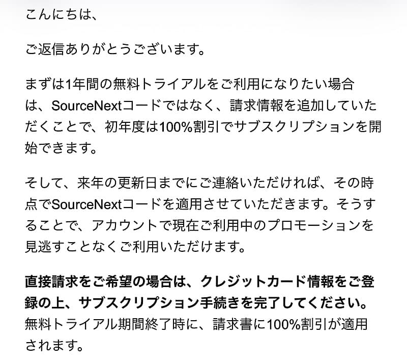 ソースネクストの3年版と使う前に、1年間の無料トライアルを使うよう勧められました。