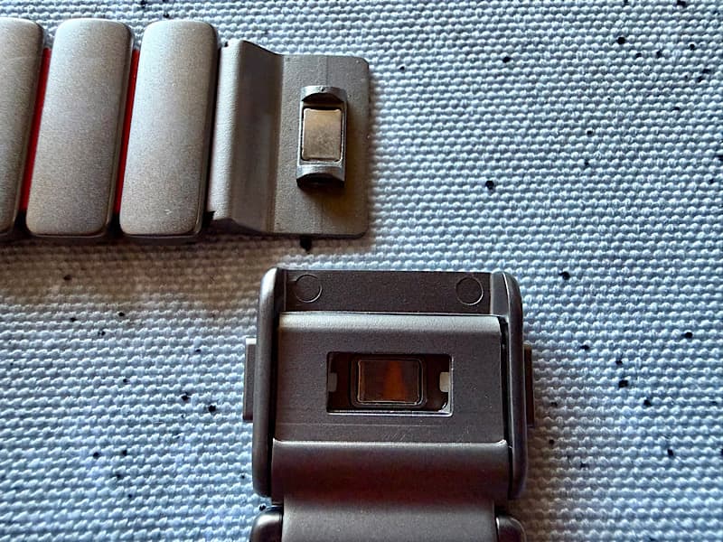 しかも細かいのが、この予備のパーツの幅。バンドにすでに付いているパーツの幅より少し狭い。つまり、パーツを外しても微妙に合わないときに、これを組み合わせて長さの調整ができる仕組みになっています。ちなみに私は、このパーツをバンドの両片方から1つずつ外したサイズがジャストフィットだったので、使うことはありませんでしたが、今後調整する必要があったら使いたいと思います。