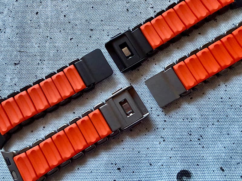 色違いで2つも購入し私的には、高価な買い物ましたが、デザインがとても気に入っているので、買って良かったと思ってます。MOFTのマグネット式バンドもシンプルで軽くて良いですが、こちらはシンプルというかデザインが気に入っているのでどちらも気に入ってます。