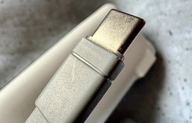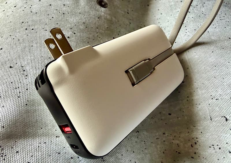 そしてコンセントを出して充電。100%充電で問題ありませんでした。またストラップにもなっているUSB-Cケーブルや、USB-A/USB-C端子からの充電も問題なくできました。