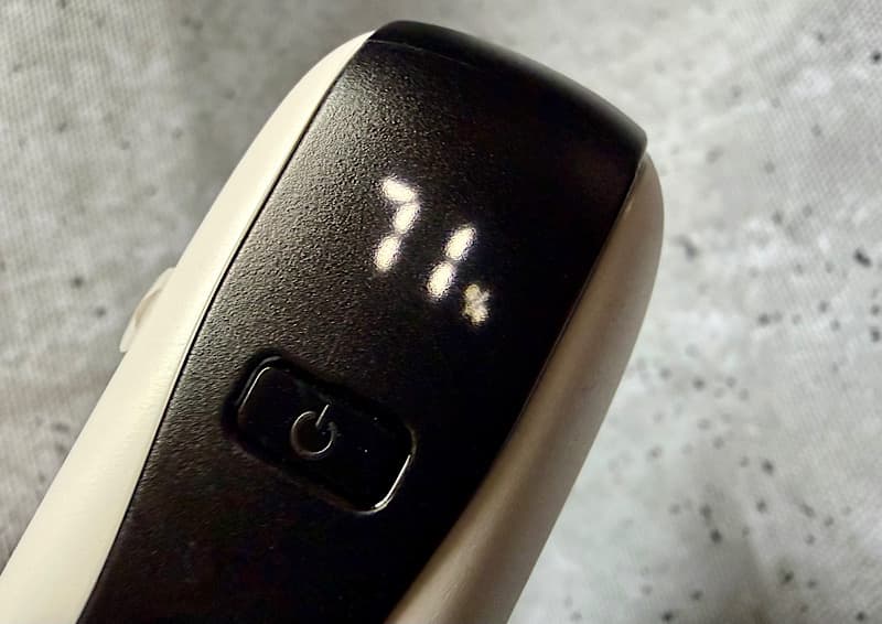 バッテリーの容量は、インジケーターの下にあるボタンを押すことで、すりガラスのようなディスプレイになってて、そこに表示されます(充電中は緑色のランプも点滅します)。Apple Watchをこのバッテリー本体で充電する際には、この電源ボタンを押すことで充電が開始されます。(iPhoneをストラップにもなっているUSB-Cケーブルは、iPhoneに挿した瞬間から充電が開始されます。)