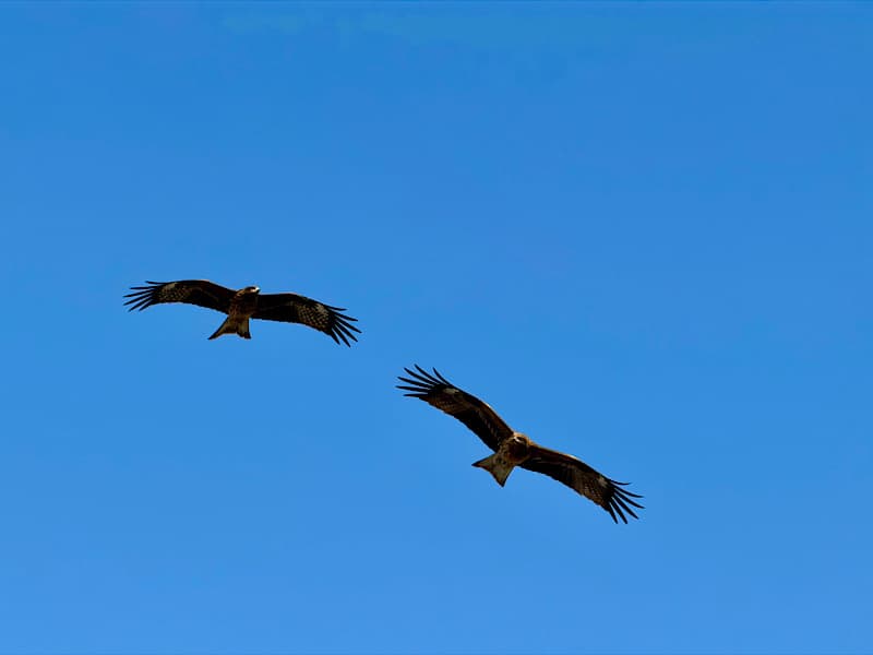 また、空を見ると、トビ(トンビ)が4羽くらい飛んでてじゃれあったりしてましたが、こちらに来た2羽だけ写真が撮れました。こちらでは縮小しているので分かりづらいですが、トビの顔も見れ獲物を探しているのが目つきが怖かったです。