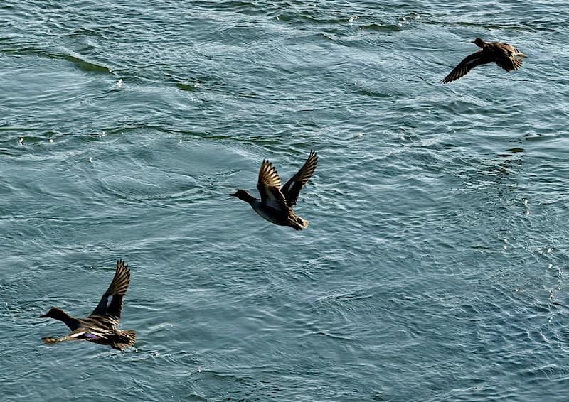 そして、下の川にはマガモ達が川辺にいて、私が知らずに近寄ってしまったため一斉に飛び出したものの川の中央へ移動。驚かせごめんなさい。