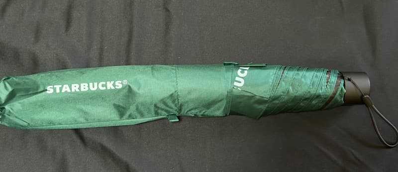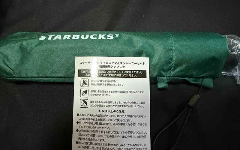 折りたたみ傘ですが、STARBUCKSのロゴだったりコーヒーチェリーのさりげないワンポイントなど広げると傘にデザインされています。